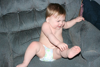 Ok, so I've been a bad blogger...I'm sorry. I will TRY my hardest to do better. Now that Reese is mobile, I spend a good chunk of the day just trying to keep up with her. Here goes: January was a very very busy month. We had our Christmas celebration with Kevin's family, Alexis received the sacrament of Baptism, Reese started crawling on her hands and knees (she was partial to the Army crawl previously), she has mastered the art of crawling FASTER and FASTER, she learned to pull herself up on, well, EVERYTHING, we took a trip to Yankton to visit Great Grandpa and Grandma Skalberg, and Reese turned 9 months old! She has also started repeating sounds and words and knows how to "say" what a lizard "says" quite well (I'll try to get some pix of that up...I'm never fast enough to catch that cute little tongue out)! We are amazed every day at the new things she does. How fun!!! I'm told it only gets better, too! Yay!